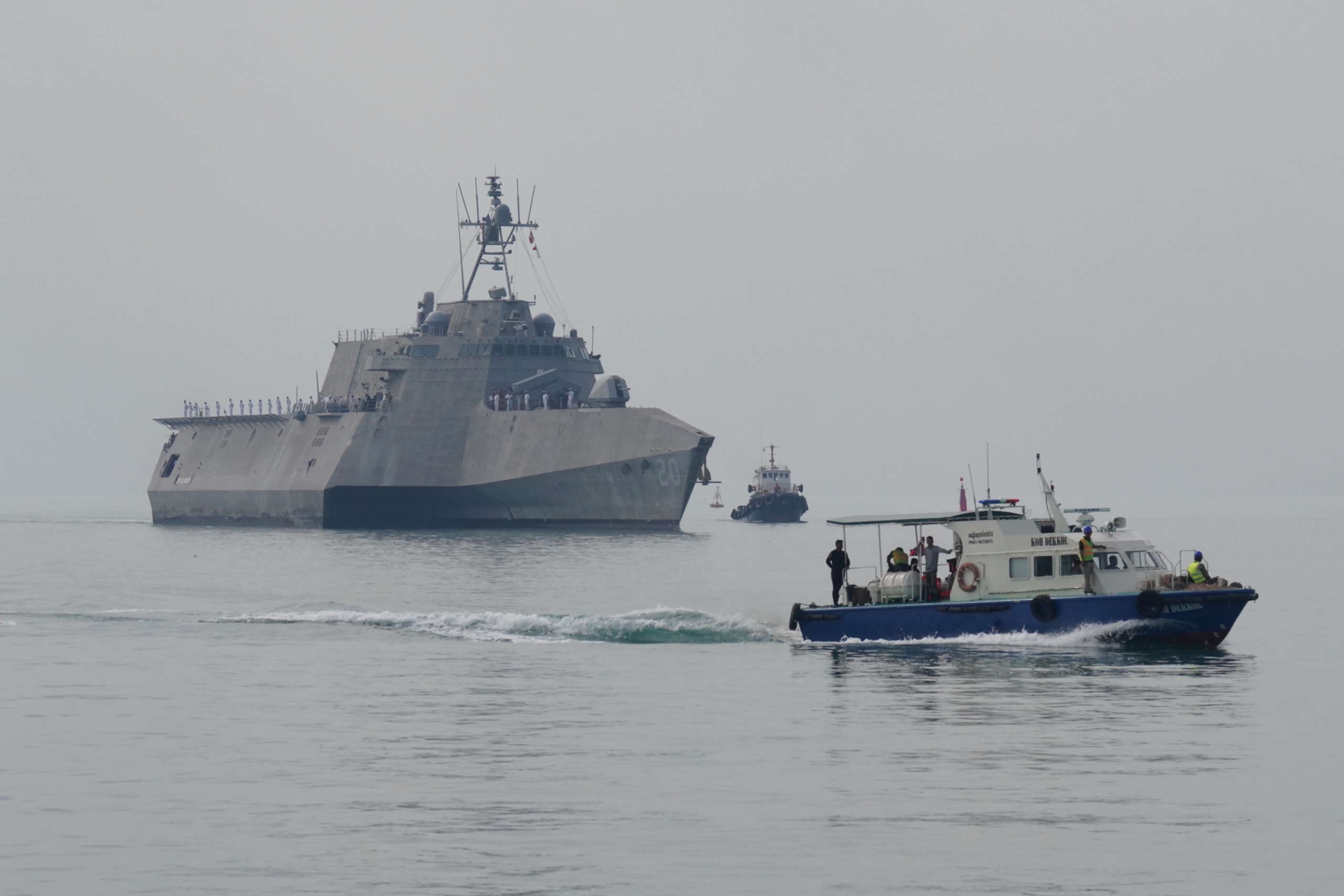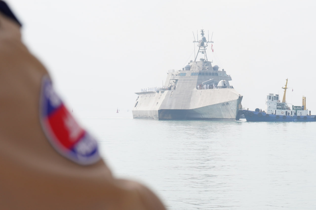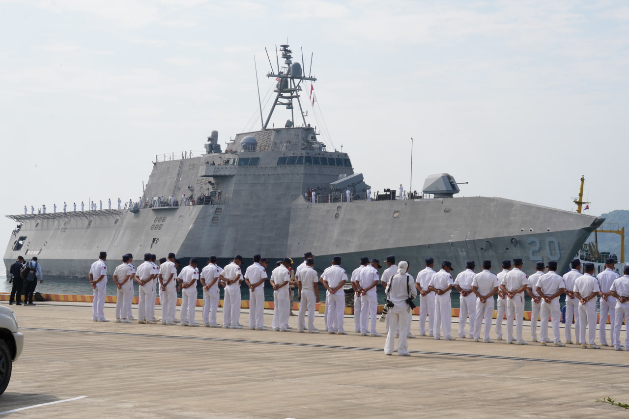 ដំណើរមដល់នៃនាវាចម្បាំងអាមេរិក ត្រូវបានទទួលស្វាគមន៍យ៉ាងកក់ក្តៅដោយឧត្តមនាវីត្រី អុិន សុខេមរា មេបញ្ជាការរង មូលដ្ឋានសមុទ្ររាមកងទ័ពជើង។