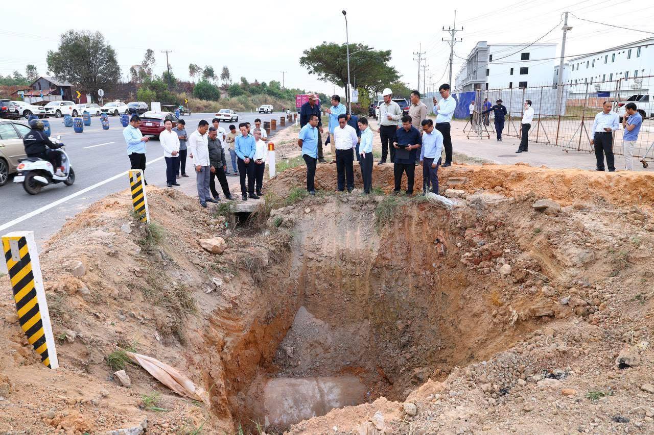 រដ្ឋមន្រ្តីក្រសួងសាធារណការ ចុះពិនិត្យទីតាំងដីច្រោះកណ្តាលទ្រូងផ្លូវ នៅសង្កាត់បិតត្រាំង ក្រុងព្រះសីហនុ