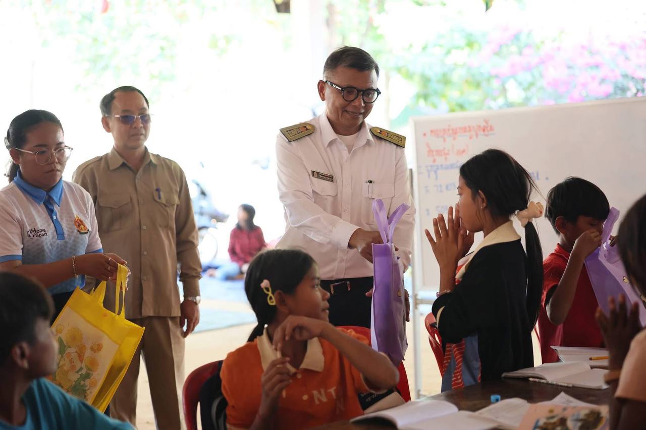ជាមួយគ្នានេះ លោកបាននាំយកសម្ភារសិក្សា គ្រឿងឧបភោគបរិភោគ និងសម្ភារប្រើប្រាស់ចាំបាច់មួយចំនួនចែកជូនដល់សិស្សានុសិស្សភៀសសឹក ព្រមទាំងផ្ដល់ថវិកាលើកទឹកចិត្តដល់លោកគ្រូ អ្នកគ្រូស្ម័គ្រចិត្ត និងប្រគេនបច្ច័យជូនដល់ព្រះចៅអធិការវត្ត ដើម្បីគាំទ្រដល់ដំណើរការ របស់ជំរំសុវត្ថិភាពនេះបន្តទៀត សំដៅធានាបានថាសិស្សានុសិស្សភៀសសឹកនៅតែបន្តទទួលបានឱកាសសិក្សារៀនសូត្រ ប្រកបដោយគុណភាព និងសមធម៌ ទោះក្នុងកាលៈទេសៈណាក៏ដោយ៕