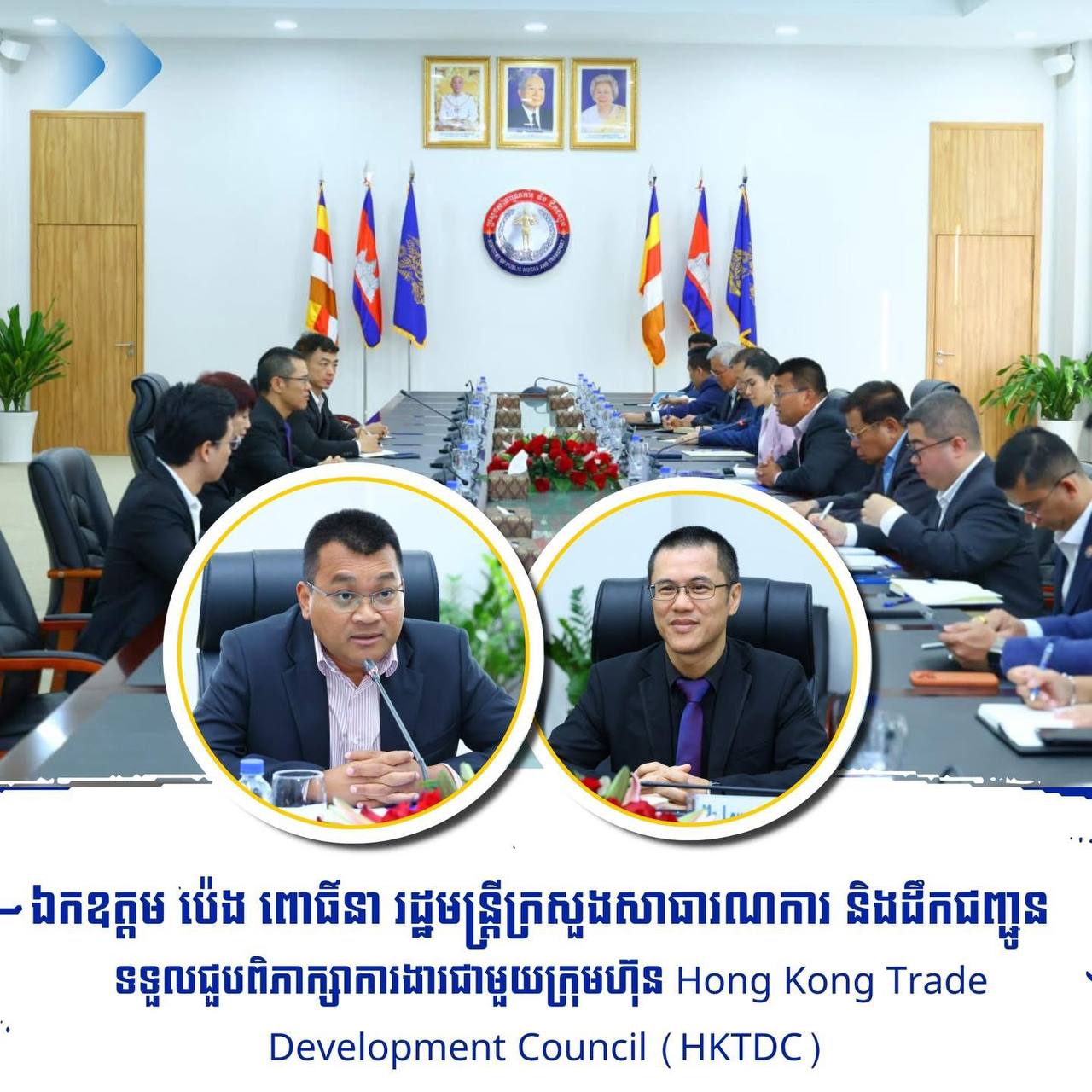 (ភ្នំពេញ)៖ លោក ប៉េង ពោធិ៍នា រដ្ឋមន្រ្តីក្រសួងសាធារណការ និងដឹកជញ្ជូន នាព្រឹកថ្ងៃទី២០ ខែមករា ឆ្នាំ២០២៦ បានអនុញ្ញាតឱ្យក្រុមហ៊ុន Hong Kong Trade Development Council (HKTDC) ចូលជួបសម្តែងការគួសម និងពិភាក្សាការងារ ដោយមានការចូលរួមពីថ្នាក់ដឹកនាំក្រសួង និងមន្រ្តីពាក់ព័ន្ធ។