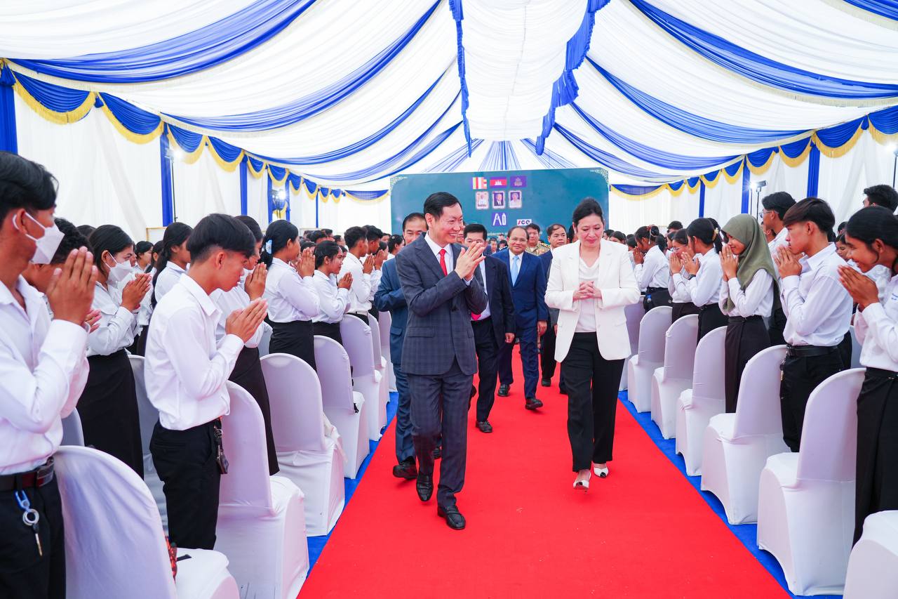 ក្នុងខណៈនោះ គណៈអធិបតី ព្រមទាំងប្រតិភូ ក៏បានអញ្ជើញចុចប៊ូតុង ដើម្បីបើកការដ្ឋានសាងសង់ជាផ្លូវការ នូវរោងចក្រកែច្នៃដបប្លាស្ទិក ដែលប្រើប្រាស់រួច នៅតំបន់សេដ្ឋកិច្ចពិសេសពោធិ៍សាត់ ព្រមទាំងថតរូបទុកជាអនុស្សាវរីយ៍ផងដែរ៕
