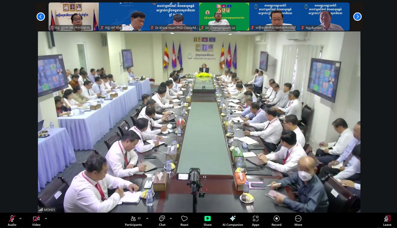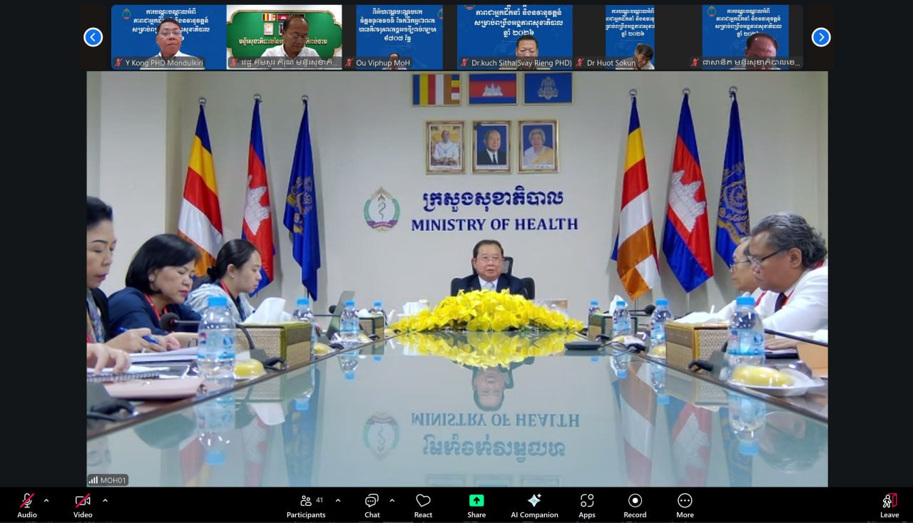 សូមជម្រាបថា កិច្ចប្រជុំនេះមានការអញ្ជើញចូលរួមពី រដ្ឋលេខាធិការ អនុរដ្ឋលេខាធិការ ទីប្រឹក្សាក្រសួង អគ្គនាយក អគ្គនាយករង និងគ្រប់ប្រធានអង្គភាពថ្នាក់កណ្តាលក្រោមឱវាទក្រសួងសុខាភិបាល ប្រធានមន្ទីរសុខាភិបាលរាជធានីភ្នំពេញ និងតាមប្រព័ន្ធ Zoom ប្រធានមន្ទីរសុខាភិបាលខេត្ត៕