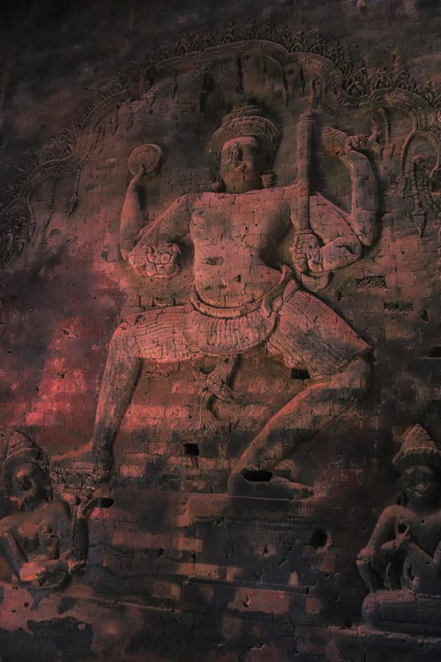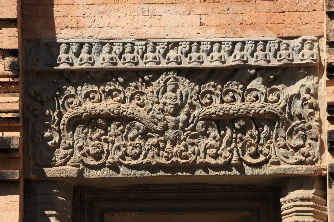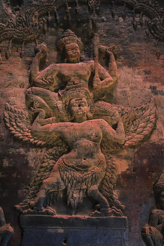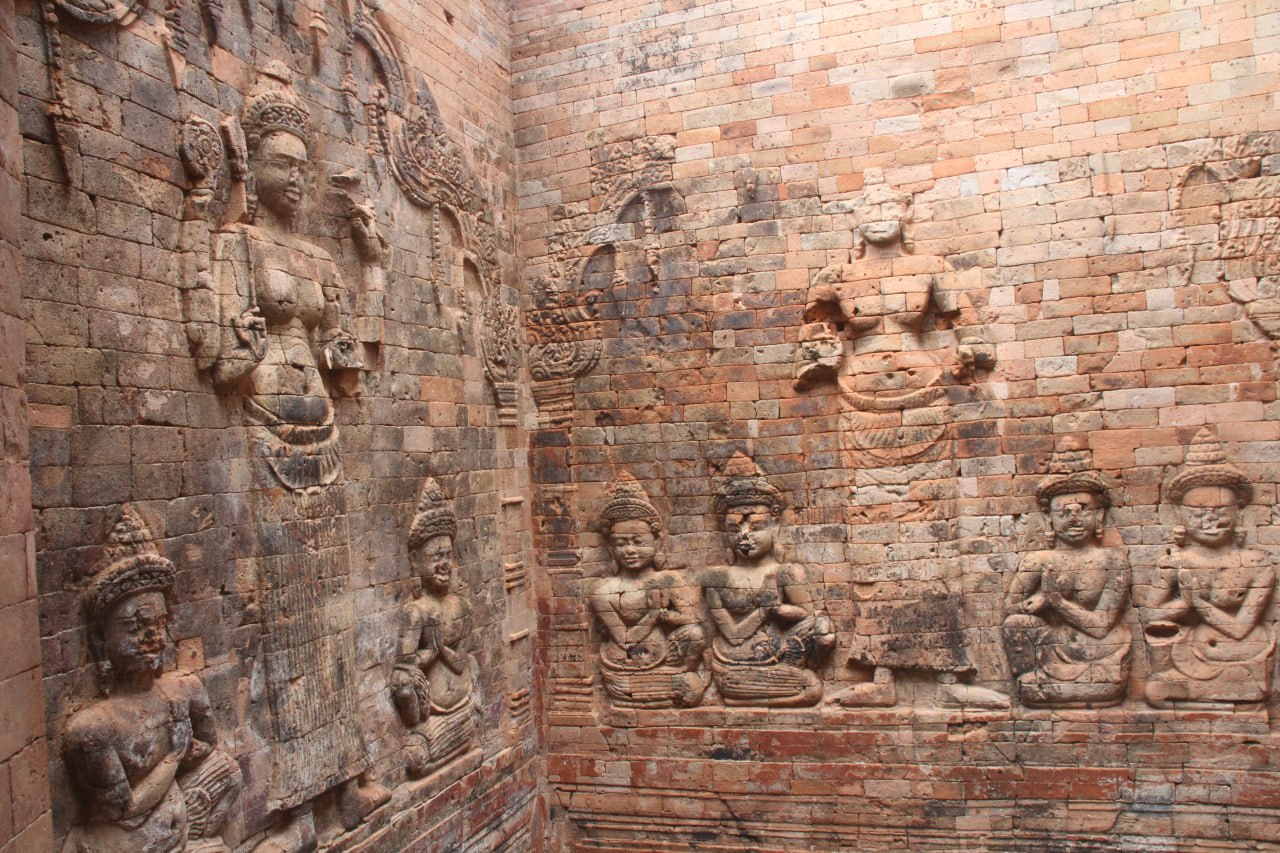 ចម្លាក់ទេវកថាព្រះនារាយណ៍ (វិស្ណុ) ដ៏ល្អឥតខ្ទោះ នៅលើជញ្ជាំងឥដ្ឋប្រាសាទក្រវ៉ាន់