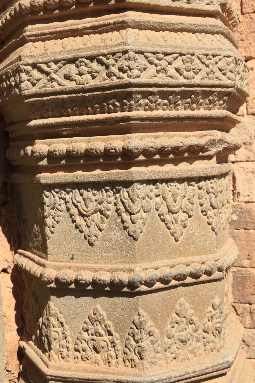 តួប៉មទាំងប្រាំរបស់ប្រាសាទនេះ បែរមុខទៅទិសខាងកើតតាមខ្លោងទ្វារមួយបើកចំហ និងទិសបីទៀតមានទ្វារបញ្ឆោត សសរ និងផ្តែរធ្វើអំពីថ្មភក់។ ក្នុងចំណោមតួទាំងប្រាំនេះ មានតែតួកណ្តាល និងតួជាប់ខាងជើងទេ ដែលមានចម្លាក់បដិមាលើជញ្ជាំងឥដ្ឋផ្ទៃខាងក្នុង។ រីឯជញ្ជាំងលើតួដទៃទៀត ទំនងជាពុំទាន់បានឆ្លាក់រចនាសម្រេច។ នៅតាមជញ្ជាំងទាំងបីនៃតួកណ្តាល មានក្បាច់ចម្លាក់រឿងព្រះនារាយណ៍ (វិស្ណុ) សំខាន់ៗ ដូចជា ត្រីវិក្រម (អវតាជាព្រាហ្មតឿ) ព្រះនារាយណ៍ព្រះហត្ថប្រាំបីដែលមានរូបក្រពើនៅពីលើ និងជាពិសេសចម្លាក់ព្រះនារាយណ៍គង់លើយានជំនិះគ្រុឌ។