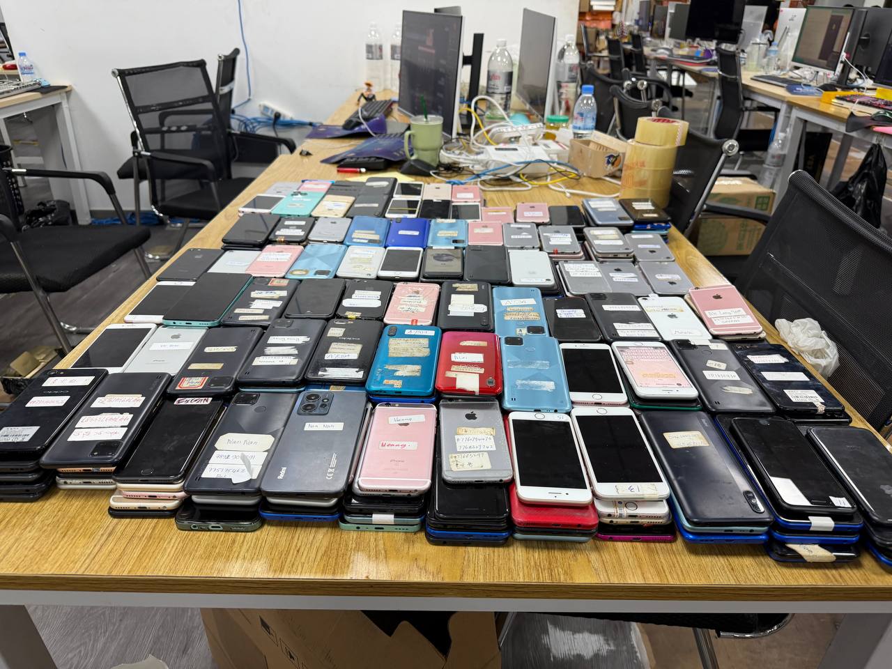 វត្ថុតាងរួមមានកុំព្យូទ័រ ALL in One ចំនួន ៨៩គ្រឿង, ម៉ូនីទ័រ (Monitor) ១គ្រឿង CPU ចំនួន០១គ្រឿង, ទូរស័ព្ទបម្រើឱ្យបទល្មើស ចំនួន ៣៨៤គ្រឿង និងស៊ីមកាតអន្តរជាតិមួយចំនួនធំ។