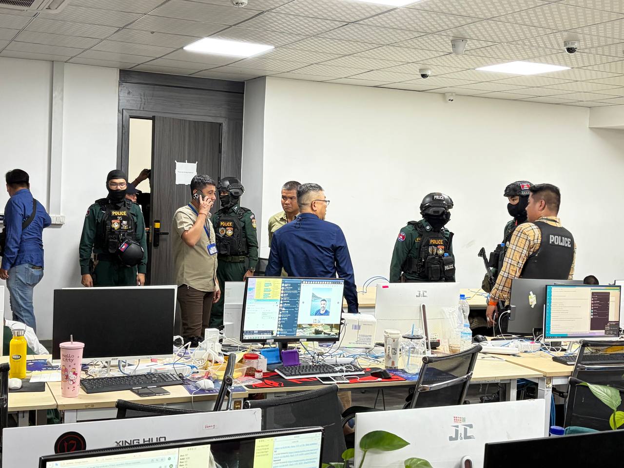 ប្រតិបត្តិការនេះមានកម្លាំងលាំសមត្ថកិច្ចជំនាញ នៃស្នងការដ្ឋាននគរបាលរាជធានីភ្នំពេញរួមមាន៖ ការិយាល័យប្រឆាំងបទល្មើសបច្ចេកវិទ្យា, ការិយាល័យអន្តរាគមន៍ និងតម្រួតបទបញ្ជា, ការិយាល័យគ្រប់គ្រងជនបរទេស, ការិយាល័យស៊ើបអង្កេត និងអនុវត្តនីតិវិធី និងអធិការនគរបាលខណ្ឌបឹងកេង ដឹកនាំដោយឧត្តមសេនីយ៍ទោ ប៊ុន សុសិក្ខា ស្នងការរងផែនការងារសន្តិសុខ, ឧត្តមសេនីយ៍ត្រី ស ថេន ស្នងការរងផែនការងារអន្តោប្រវេសន៍ ដោយបានការសម្របសម្រួលនីតិវិធីច្បាប់ពីលោក សេង ហៀង ព្រះរាជអាជ្ញារង នៃអយ្យការអមសាលាដំបូងរាជធានីភ្នំពេញ បានចុះត្រួតពិនិត្យទីតាំងសង្ស័យមានលួចលាក់ប្រព្រឹត្តបទល្មើសឆបោកតាមប្រព័ន្ធបច្ចេកវិទ្យា (Online Scams) ដែលមានទីតាំង ខុនដូរ ហ្គោលឌិន វ័ន (Golden One) អគារលេខ៤១ ជាន់ទី៣០ បន្ទប់គ្មានលេខ ផ្លូវលេខ៣៦០ ភូមិ៧ សង្កាត់ទួលស្វាយព្រៃទី១ ខណ្ឌបឹងកេងកង។