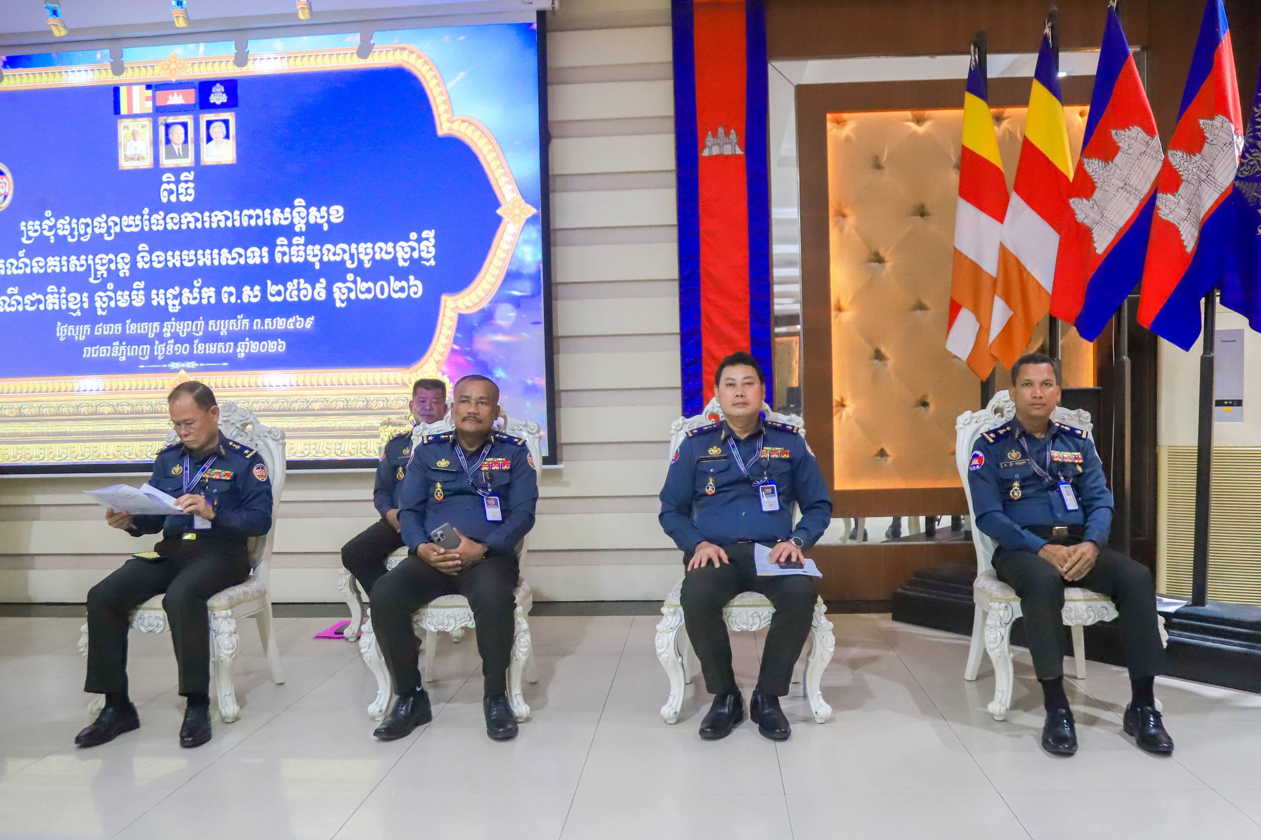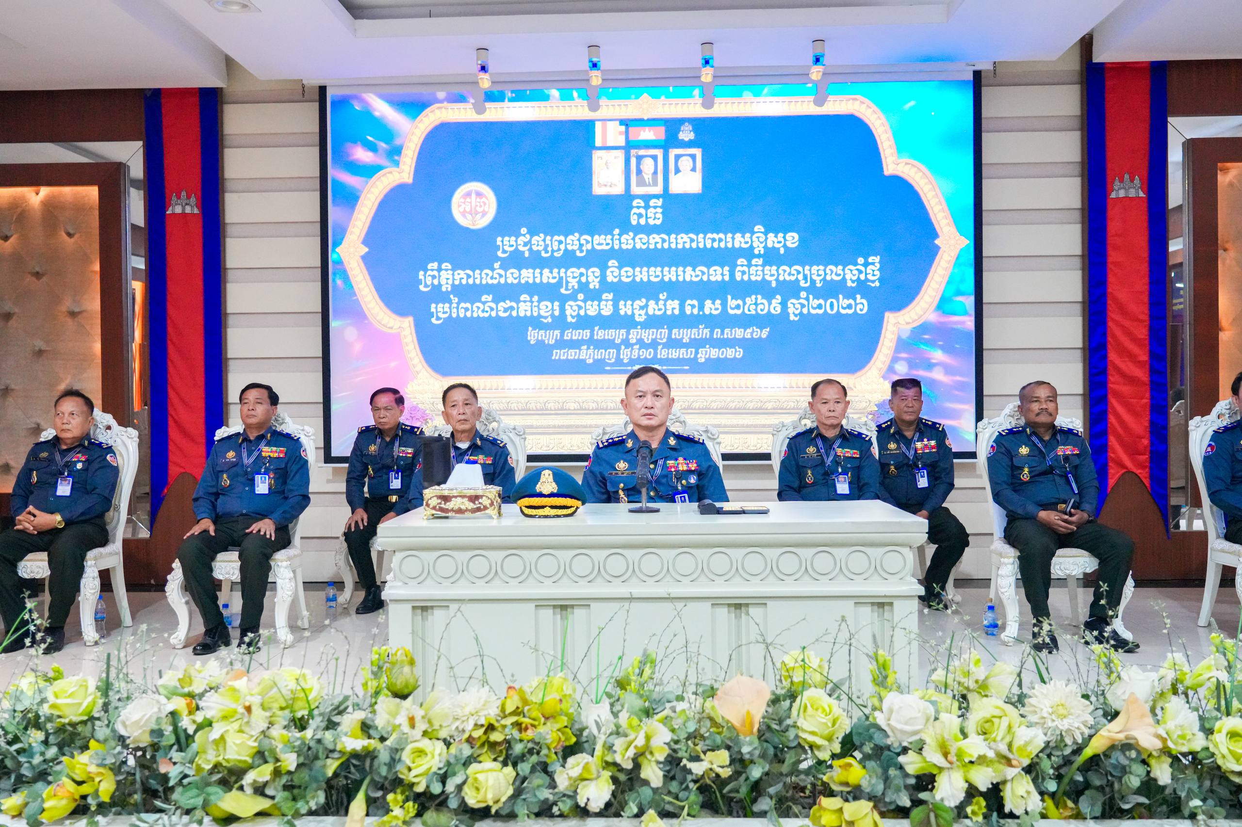 (ភ្នំពេញ)៖ នារសៀល ថ្ងៃទី១០ ខែមេសា ឆ្នាំ២០២៦ នៅបញ្ជាការដ្ឋានកងរាជអាវុធហត្ថរាជធានីភ្នំពេញ លោកឧត្តមសេនីយ៍ឯក រ័ត្ន ស្រ៊ាង មេបញ្ជាការរង កងរាជអាវុធហត្ថលើផ្ទៃប្រទេស ជាមេបញ្ជាការ កងរាជអាវុធហត្ថរាជធានីភ្នំពេញ បានអញ្ជើញជាអធិបតីក្នុងកិច្ចប្រជុំផ្សព្វផ្សាយផែនការការពារសន្តិសុខ ក្នុងព្រឹត្តិការណ៍ «នគរសង្ក្រាន្ត» ដើម្បីអបអរសាទរពិធីបុណ្យចូលឆ្នាំថ្មី ប្រពៃណីជាតិខ្មែរ ឆ្នាំមមី អដ្ឋស័ក ឆ្នាំ២០២៦ ដោយមានការចូលរួមពី លោកមេបញ្ជាការរង ជានាយសេនាធិការ លោកមេបញ្ជាការរង នាយសេនាធិការរង ប្រធានមន្ទីរ នាយ-នាយរងការិយាល័យ លោកមេបញ្ជាការ មូលដ្ឋានអាវុធហត្ថខណ្ឌទាំង១៤ និងលោកមេបញ្ជាការវរសេនាតូច ព្រមទាំង នាយ-នាយរង អាវុធហត្ថពាក់ព័ន្ធជាច្រើនរូបទៀតផងដែរ។